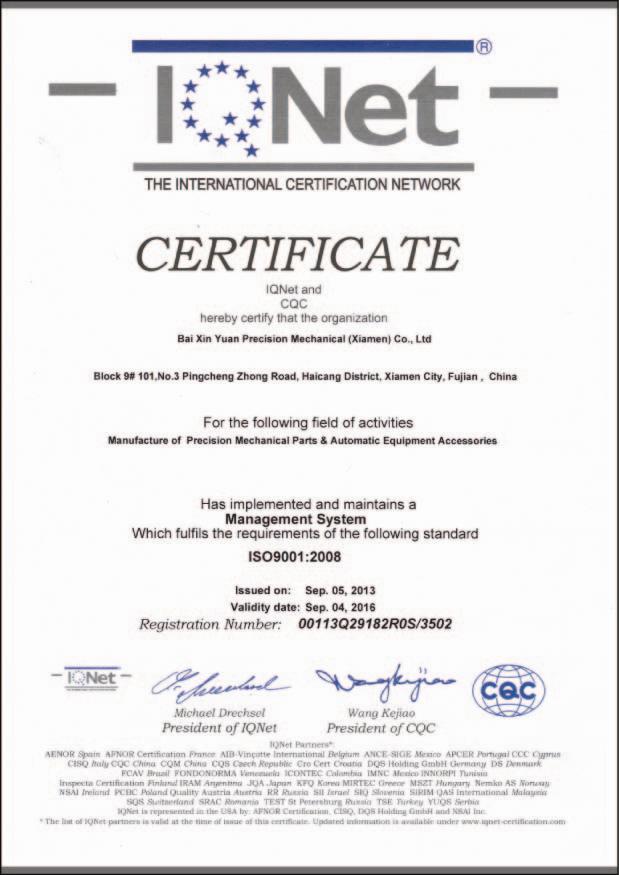 ●2013年9月佰鑫源公司取得ISO9001:2008质量体系认证
