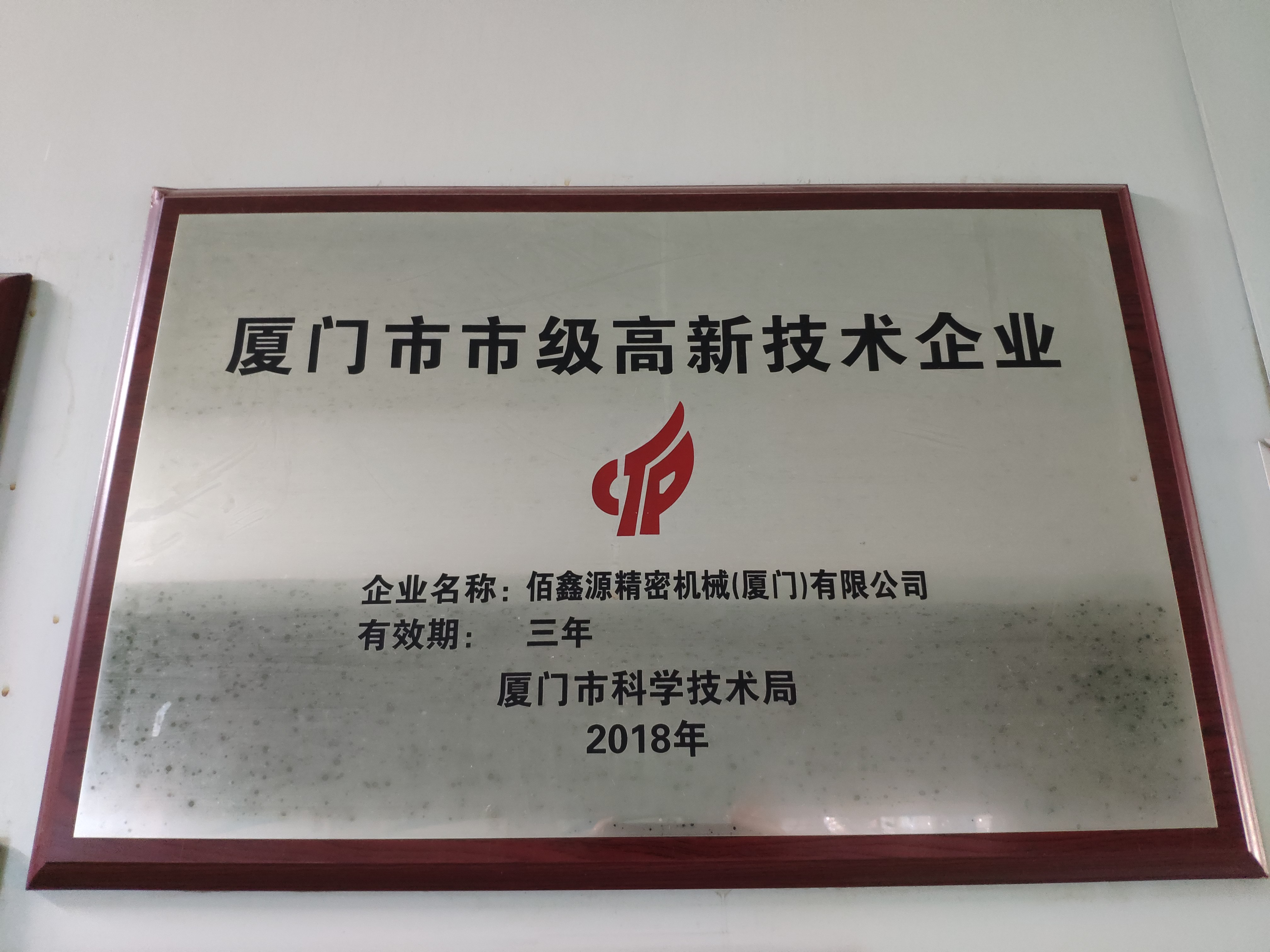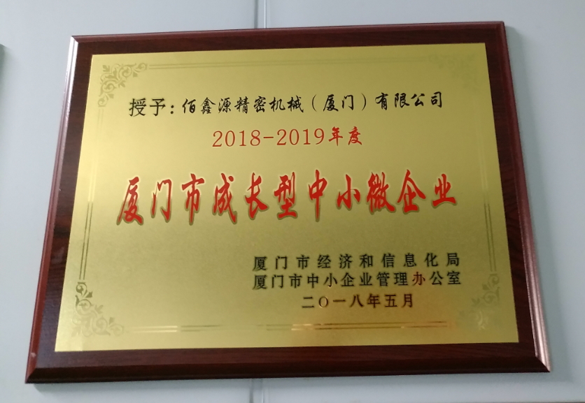●2018年5月佰鑫源公司获厦门市成长型中小微企业牌匾